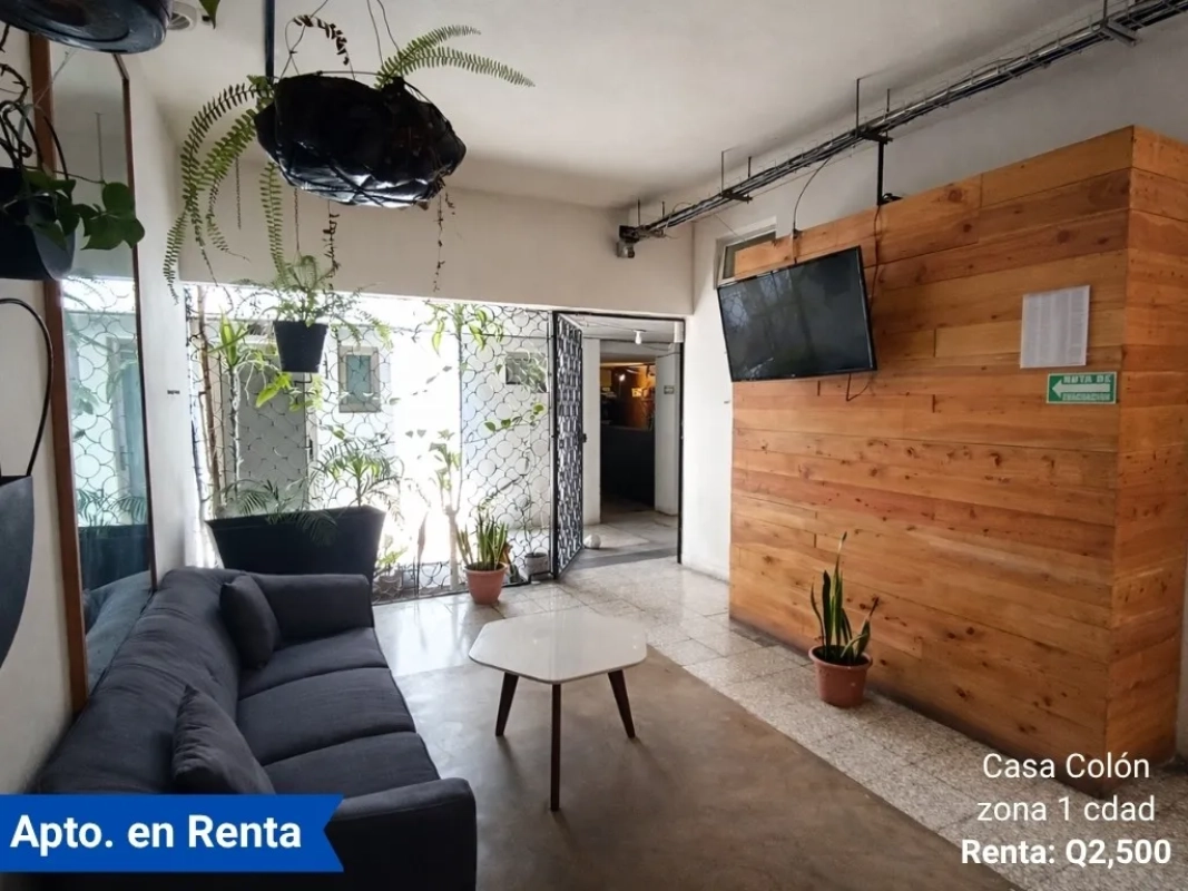 Apartamento en Renta en Casa Colon zona 1 cdad • Q2,500 — 30m² de construcción • ideal para una persona o pareja •