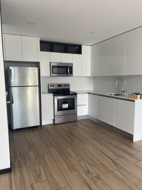 Sala/comedor, cocina equipada 2 habitaciones, 2 baños, lavandería con torre de lavado, 2 parqueos 1 bodega