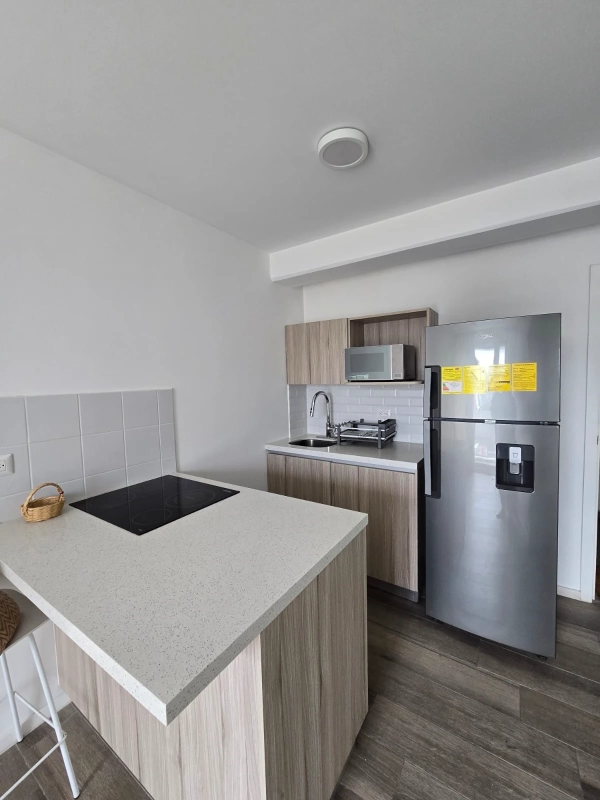 Cuenta con cocina con gabinetes y area de desayunador, sala con salida a balcón en espacio abierto, una cómoda habitación con amplio clóset, un baño completo, área de lavandería y un espacio de parqueo en sótano.