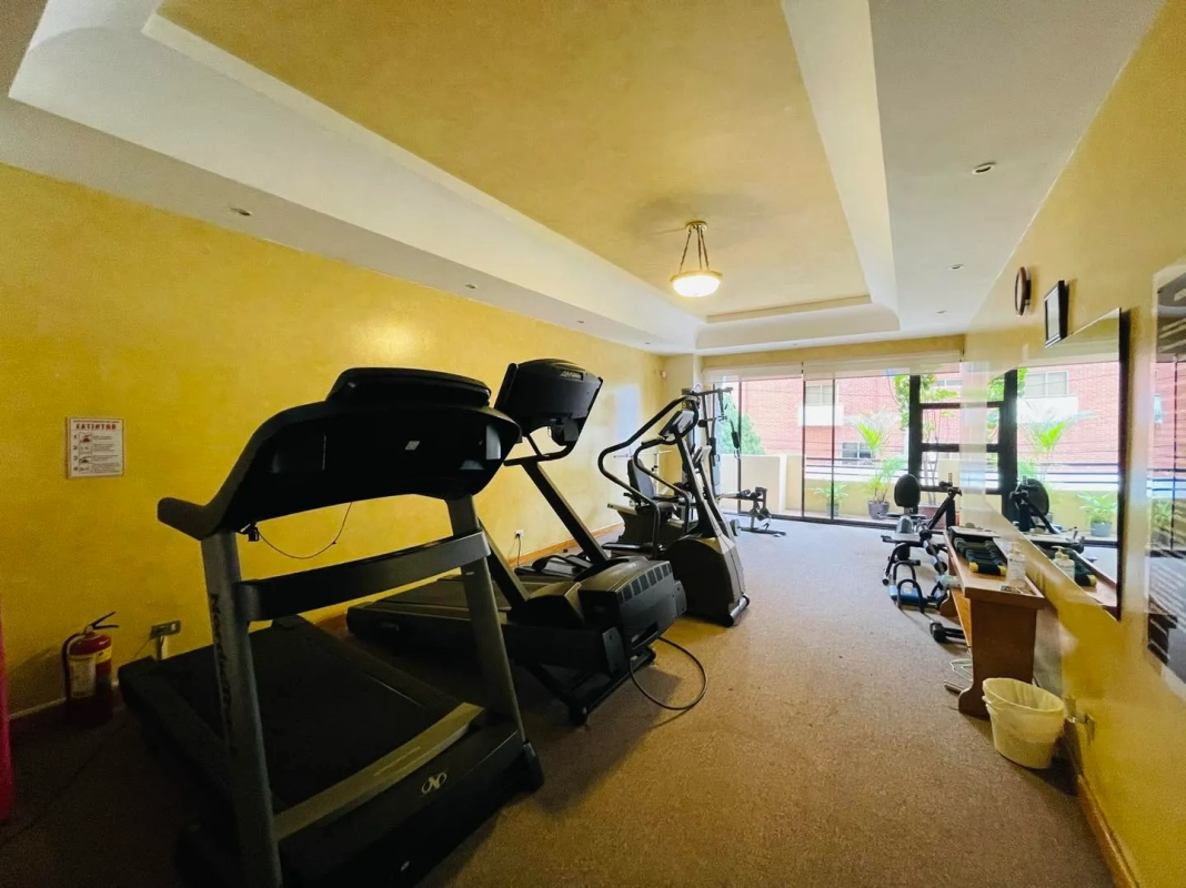 Cuenta con: baño de visitas, sala, comedor, cocina equipada, área de lavandería equipada, dormitorio de servicio, 2 dormitorios con baño propio y walking closet, 2 parqueos individuales y WIFI.