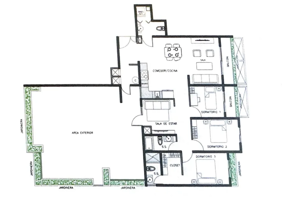 Cuenta con: 115mt2 de construcción + 60mt2 de terraza + 2 parqueos, baño de visitas, sala, comedor, cocina equipada, área de lavandería equipada, 2 balcones, amplia terraza, sala familiar, 3 dormitorios, 2.5 baños.