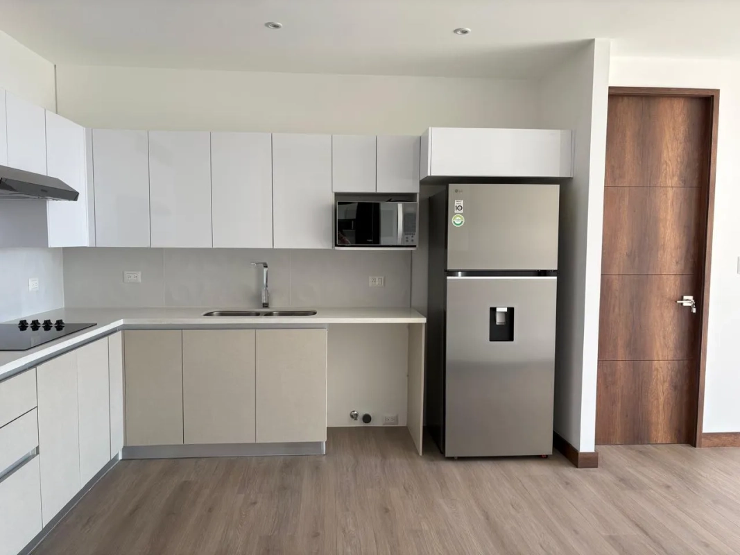 Rento apartamento en edificio Atarah, zona 10 88.15 m2 Sala Comedor amueblado Cocina equipada con refrigeradora y e