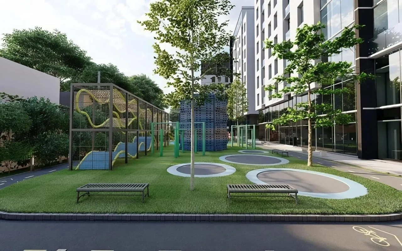 Amenidades: Área de Coworking (interior y exterior), gimnasio, Kensington Park (jardín privado que conecta las torres) y Magic Place (área verde con juegos infantiles).