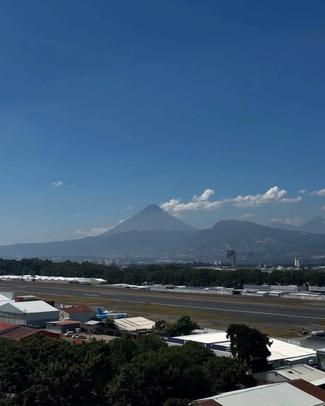 Vista hacia el aeropuerto y volcanes
