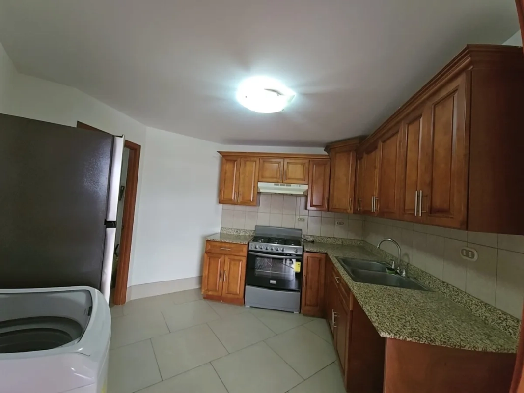 Amplio apartamento con 3 habitaciones, cuarto de servicio completo, 3.5 baños, sala, comedor, cocina equipada, terraza de 30 m² y 2 parqueos individuales. Incluye cortinas en todos los ambientes.