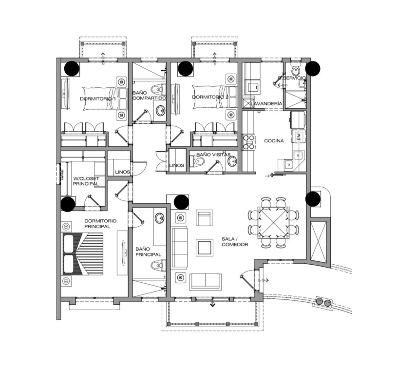 ° 2 dormitorios secundarios con closet cada uno y baño compartido.