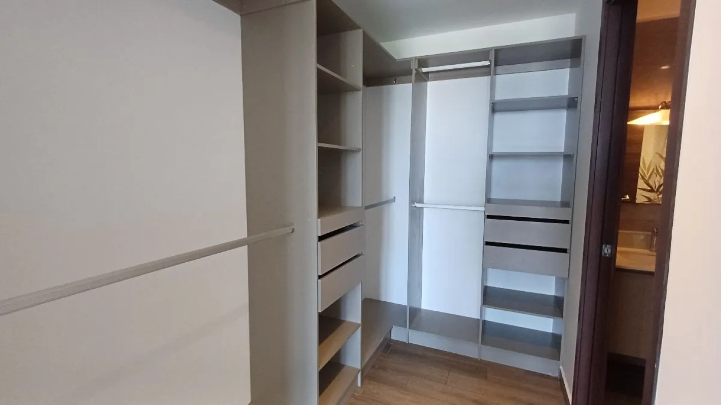 Habitación máster con walking closet y baño.