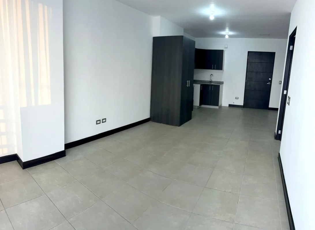 100 mts totales, que incluye dos parqueos tandem, sala, comedor cocina, incluye linea blanca( refigeradora, estufa) cortinas y calentador de agua, lavadora y secadora hay de tokens en el edifico, dormitorio con baño y walking closet, estudio / 2 habitación con baño que se comparte con area social.