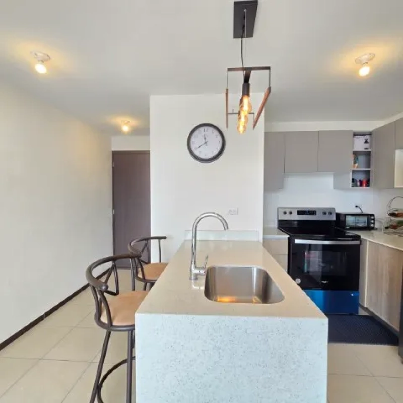 Gabinetes y top de cuarzo en la cocina, closet en las habitaciones, uno de los baños es privado para la habitación principal. Excelente iluminación y ventilación natural. Se renta con linea blanca.