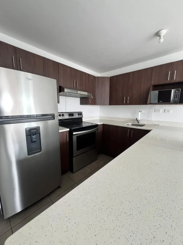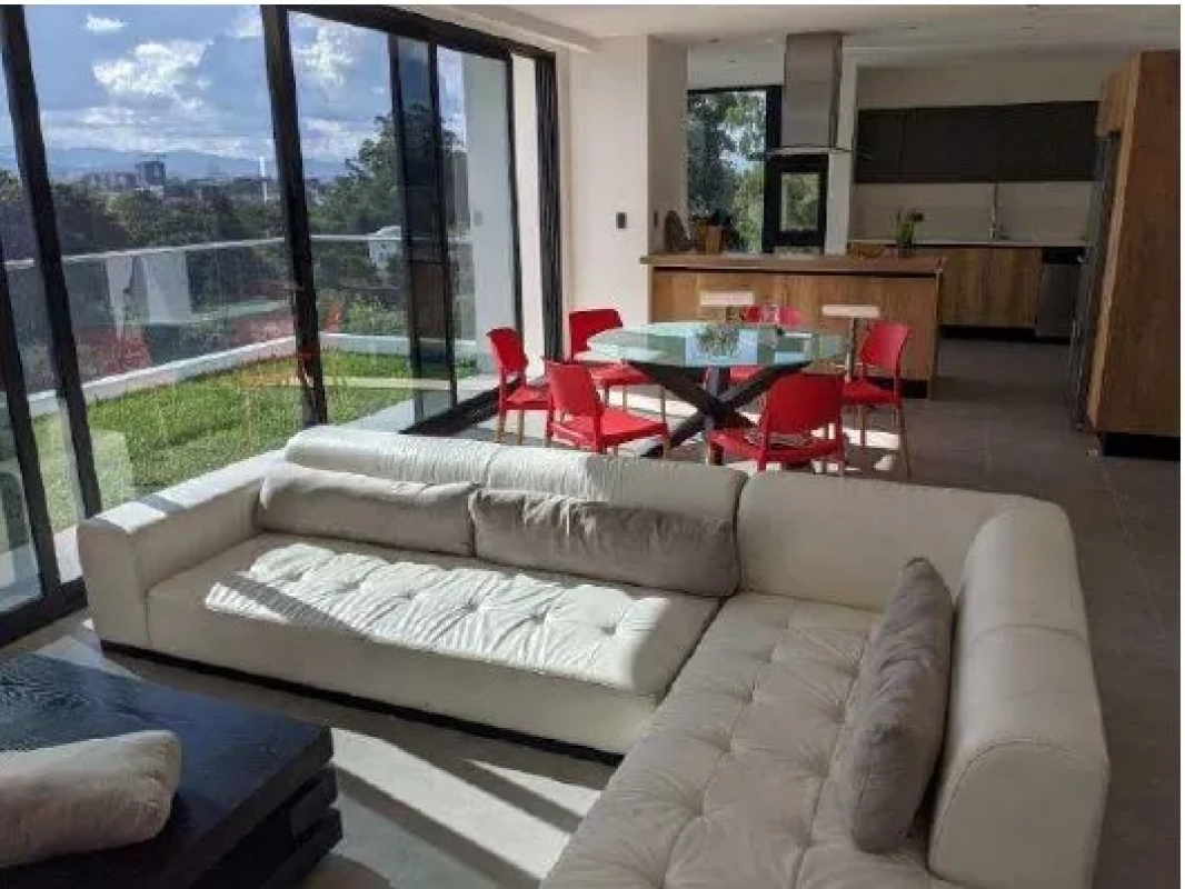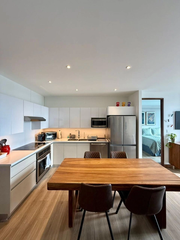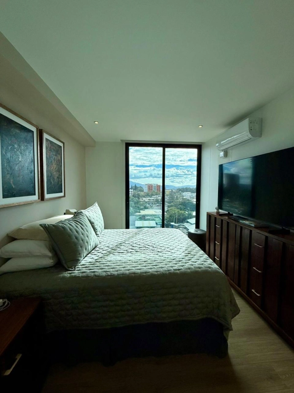 Incluye: Refrigeradora, torre de lavado, dishwasher, horno empotrado, cooktop, campana, AC, cortinas, mesa de comedor y sillas, sofá, bufetera, 2 TV, sala, mesas de noche, gavetero. Ventanas con doble cámara y film solar.