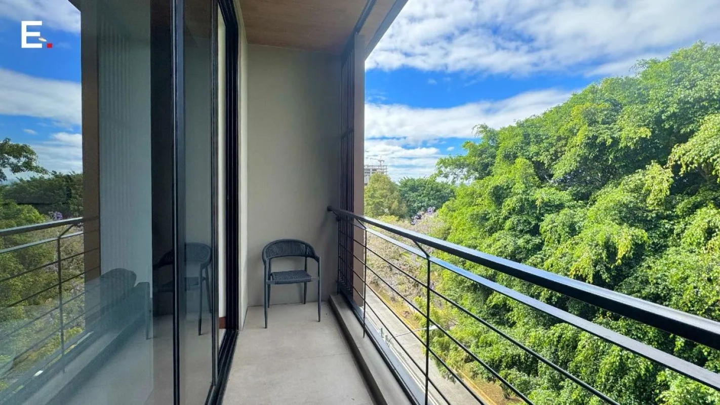 Apartamento de 97 m2 con una distribución funcional que incluye 2 habitaciones con baño privado, baño de visitas, sala y comedor integrados, área de lavandería y balcón, diseñado para un estilo de vida cómodo y práctico.