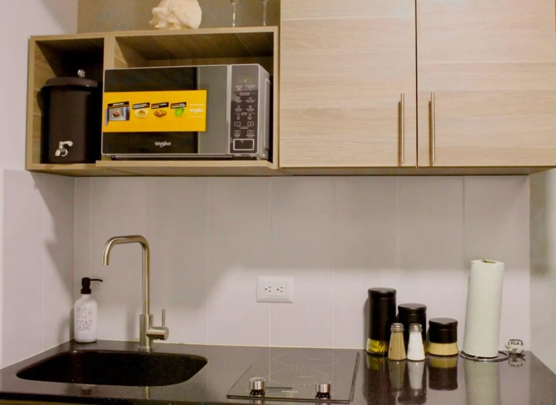 ��parqueo para moto, ideal para generar 💵ingresos inmediatos a través de Airbnb. 📍Ubicado en el 5to nivel, cuenta con 1 dormitorio, cocina equipada, baño con ducha, y una acogedora área de sala-comedor.