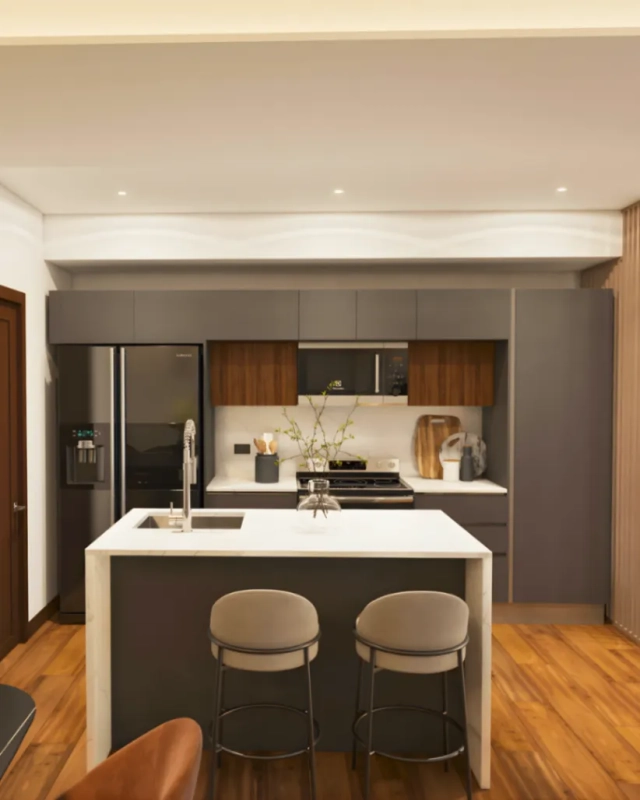 • Lobby de doble altura • Motor Lobby • Sky Roof con jacuzzi y fire pits • Piscina climatizada • Gimnasio equipado • Business Center con 3 salas de reuniones • Salón de eventos con acceso a jardín • Juegos infantiles