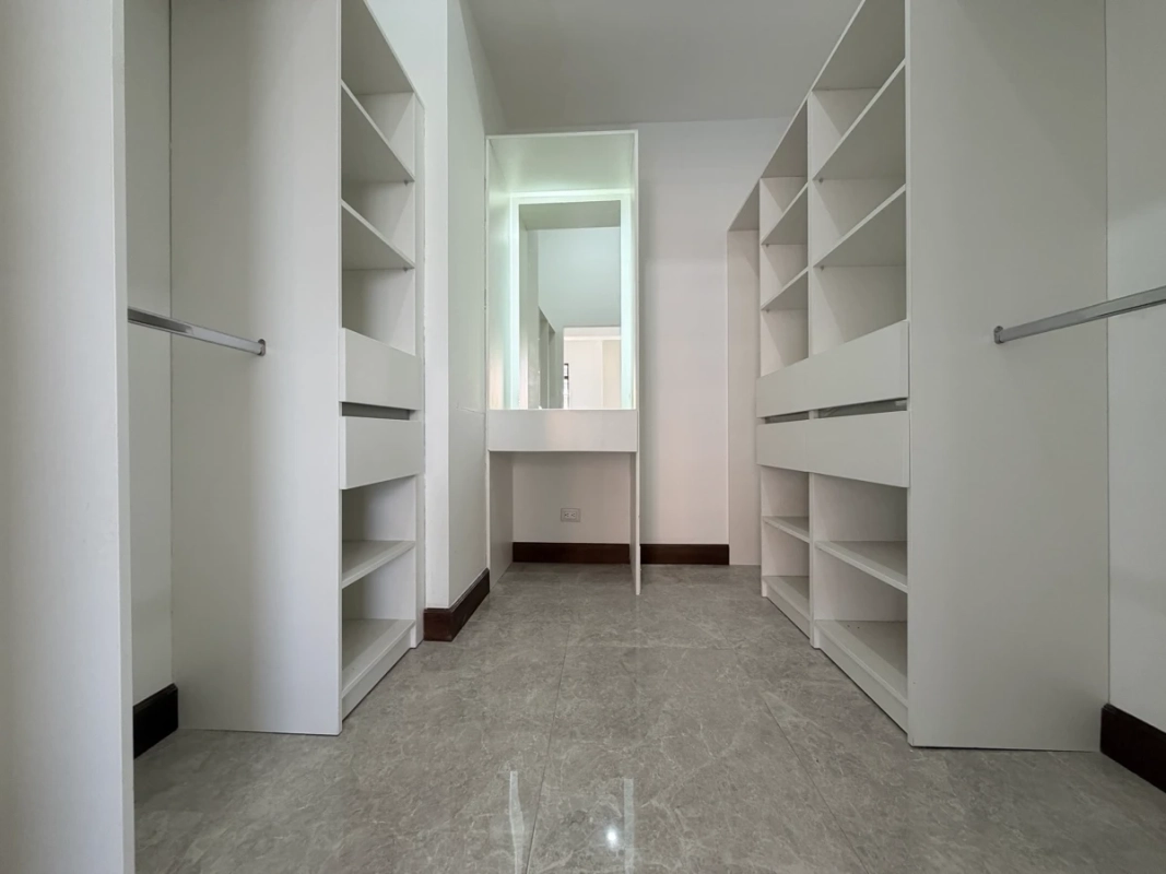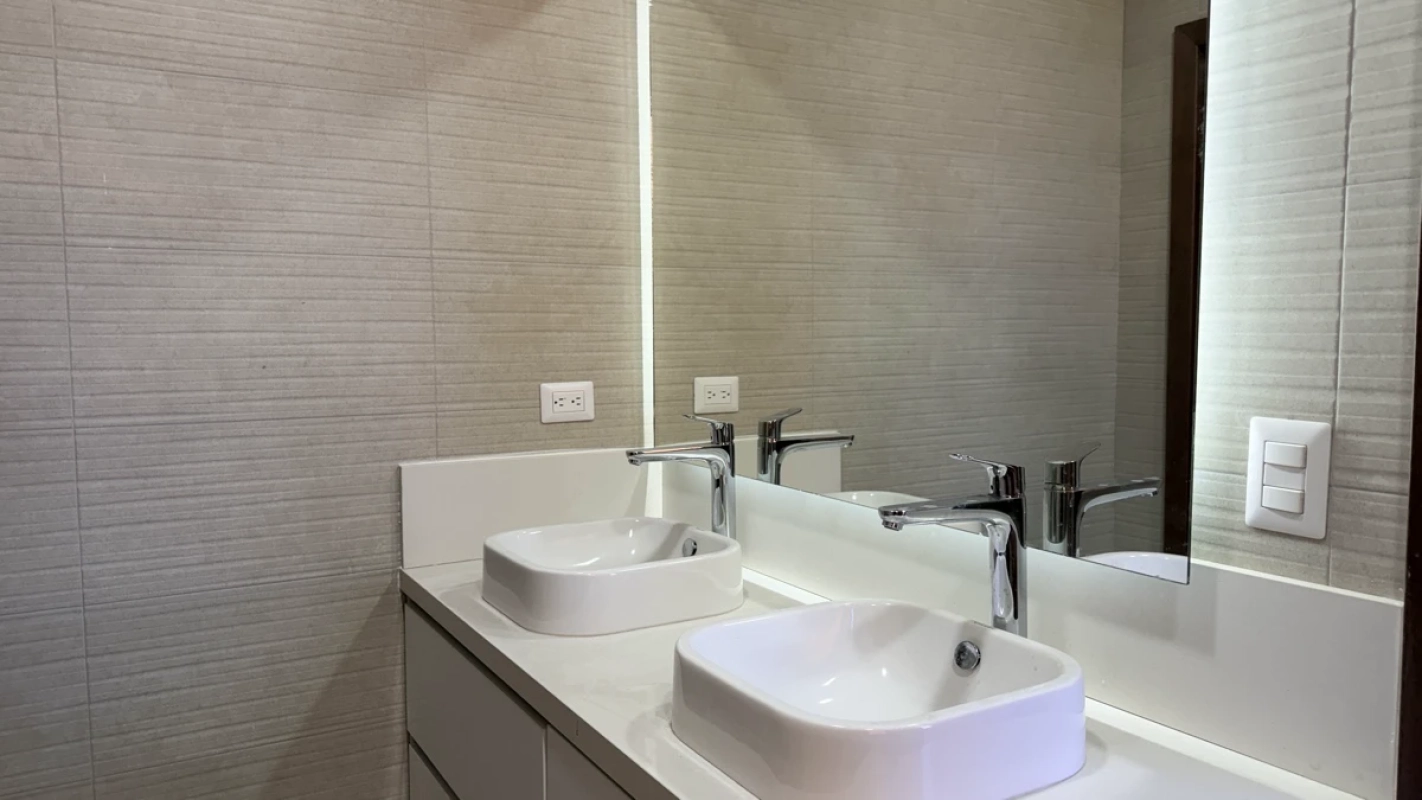 , 2 habitaciones secundarias con balcón y baño compartido, habitación principal con balcón, walk in closet y 2 baños completos. Adicionalmente, cuenta con 4 parqueos y 3 bodegas