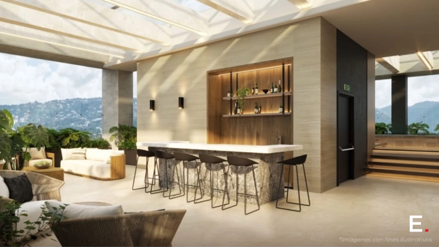 +1,300 m² de parque central • Infinity pool • jacuzzi • gimnasio interior/exterior • yoga deck • firepit• Coworking • salón social • coffee shop • pet area y más.