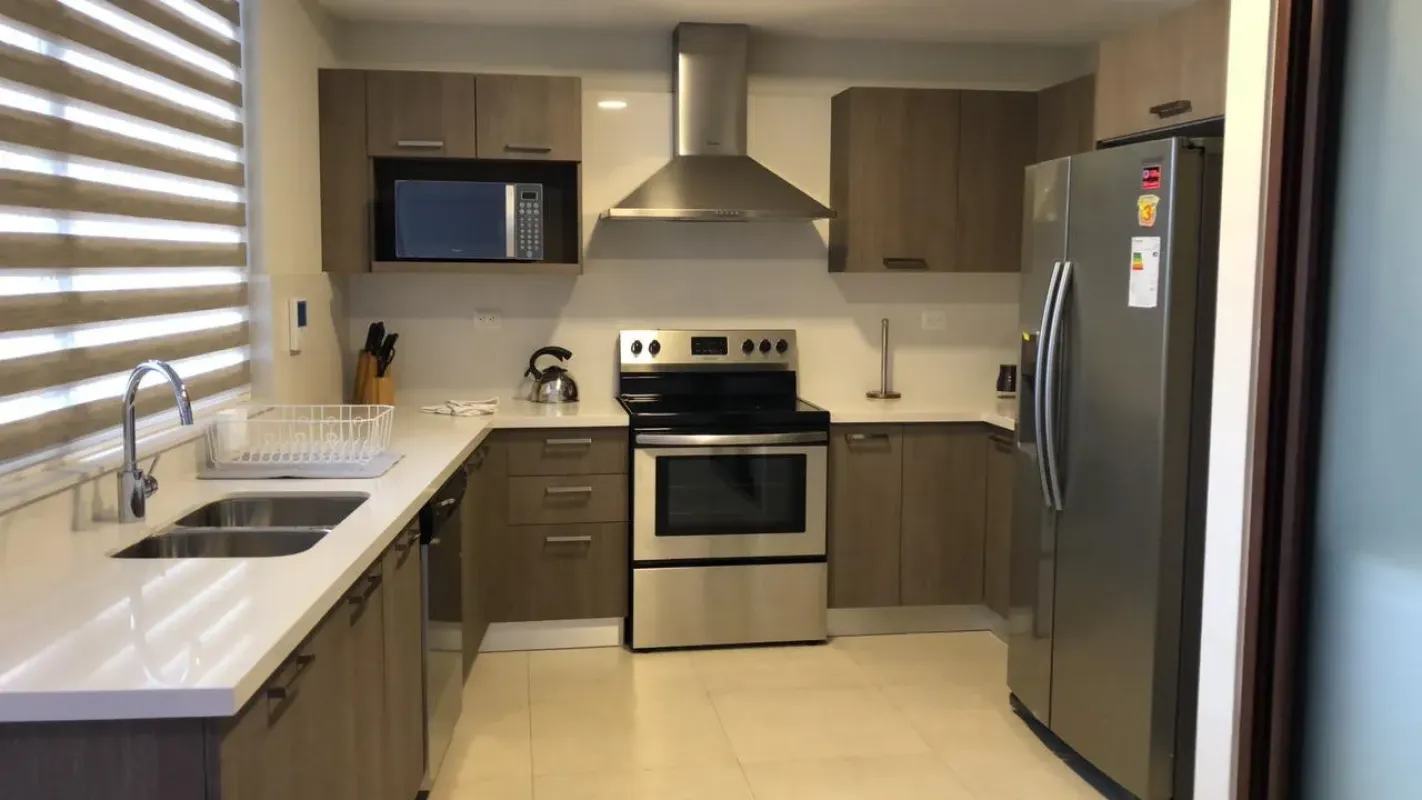 – Cocina completamente equipada con lavadora de platos.