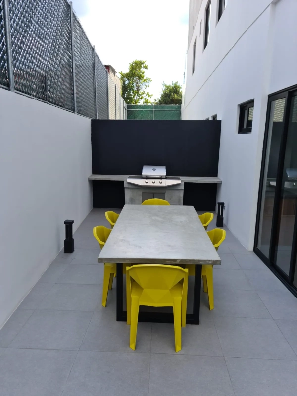 Doble garita, elevador, rampa para discapacitados, gradas de emergencia, sala o recibidor para visitas, business center, salas de estar con salida a jardín, área de barbacoa, jardín estilo japonés, Gimnasio (pesas, cardio, calistenia) y yoga deck, Piscina recreacional (en rooftop) con profundidad de 1.40mt y contorno de vidrio templado. Pila y baños para personal de servicio en corredores exteriores.