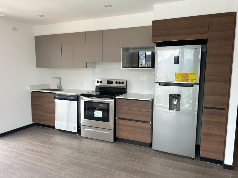Moderno apartamento con excelente ubicación! 2 habitaciones, 2 parqueos, bodega. Equipado con refrigeradora, estufa, lavadora de platos, microondas, extractor, torre de lavado, rollers/blackout y accesorios de baño.