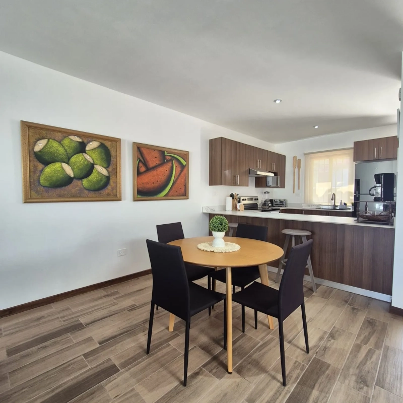 La villa se alquila completamente amueblada y equipada, lista para mudarte sin preocupaciones. Al ingresar, te recibe una acogedora cocina con desayunador integrada al comedor, ideal para compartir momentos especiales. La sala, con chimenea, crea un ambiente cálido y confortable, con salida directa a un agradable espacio exterior que puede adaptarse como sala o comedor al aire libre, acompañado de un pequeño jardín y área de churrasquera, perfecto para reuniones y fines de semana.