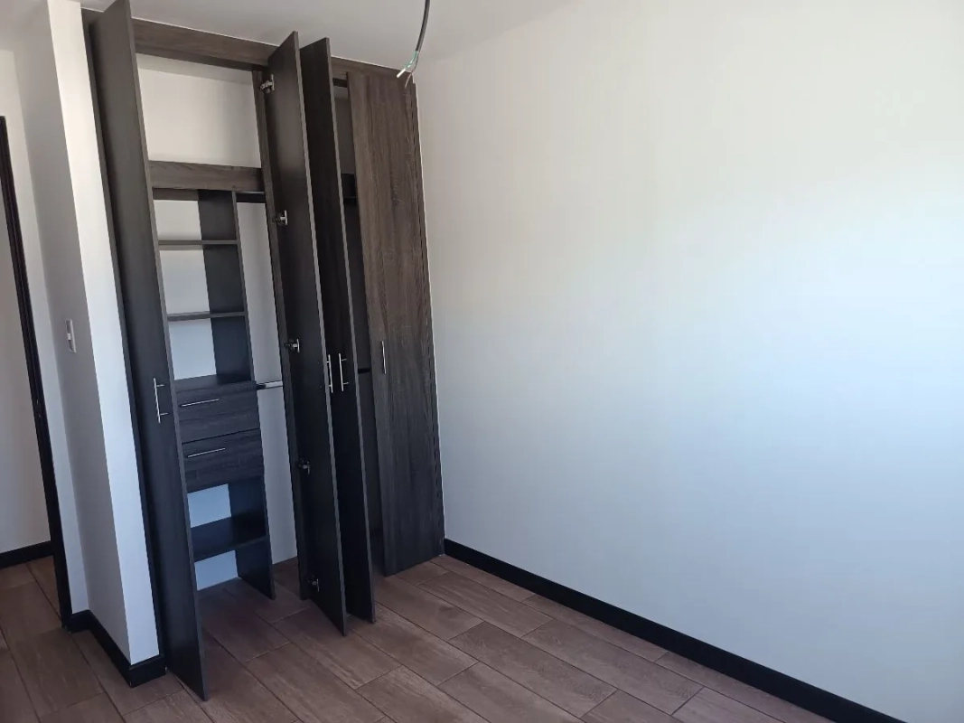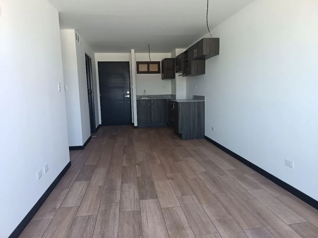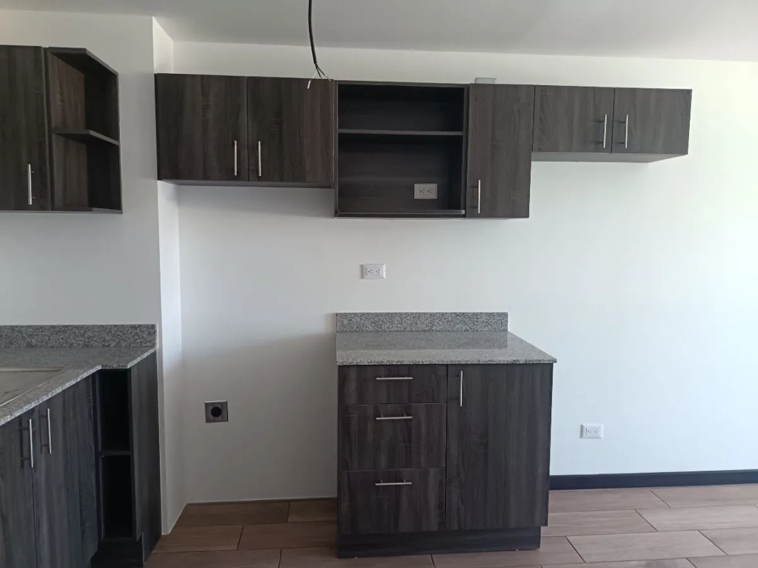 Sala, comedor, cocina con gabinetes, 3 habitaciones con clóset, 2 parqueos individuales. Entrega inmediata