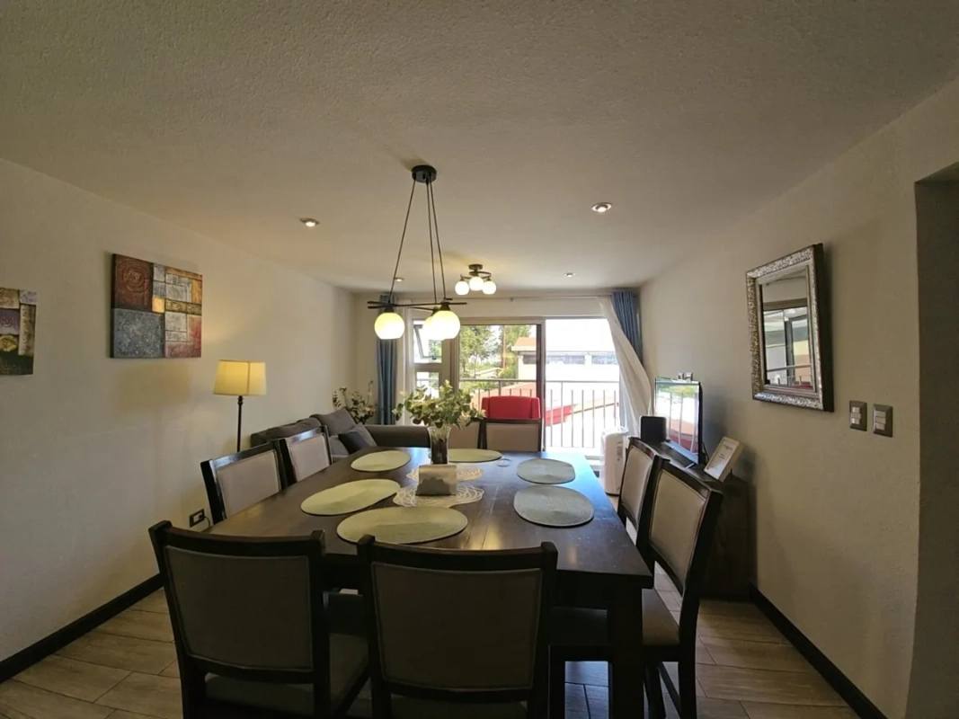Distribución: sala, comedor, cocina con desayunador, 3 habitaciones, 2 baños completos, balcón, 2 parqueos tándem.