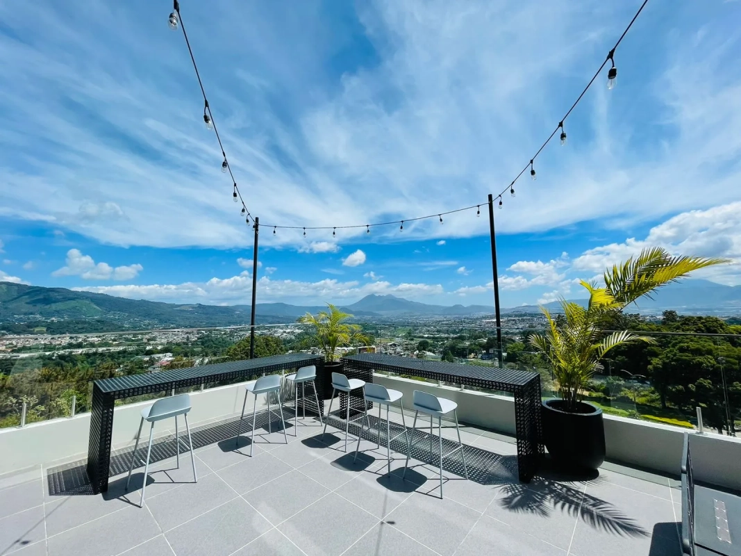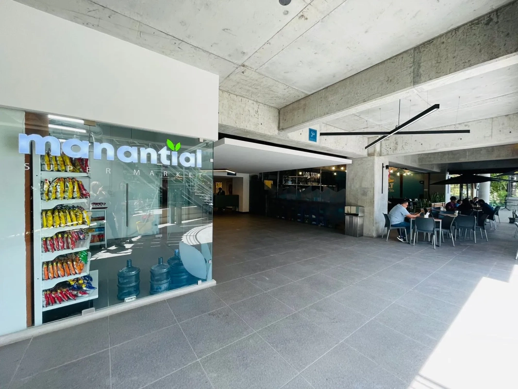 Edificio cuenta con parqueo de visitas, primer nivel comercial con restaurantes, mini market, salón de belleza, área social, gimnasio, fire pits, mesa de billar y mesa de ping pong.