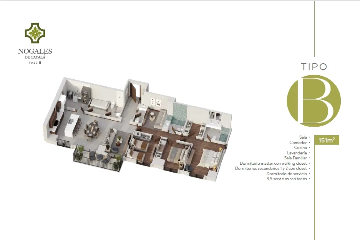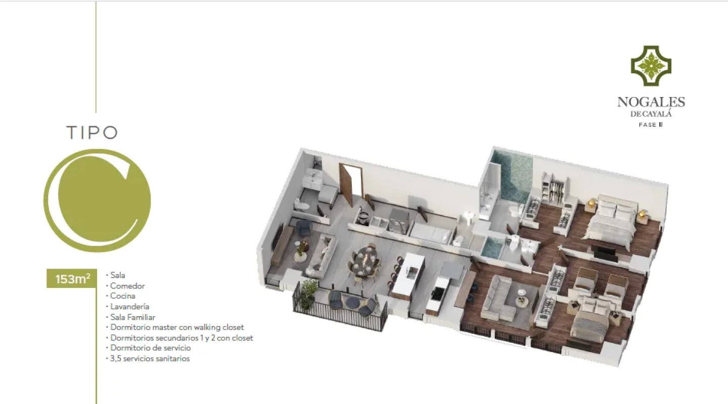 Apartamentos de 140mt2-160mt2 + 2 parqueos incluidos en el precio. Fecha de entrega: Noviembre 2026. 3 dormitorios, 2 baños, baño de visitas, sala familiar, cuarto de servicio con baño, sala-comedor-cocina.